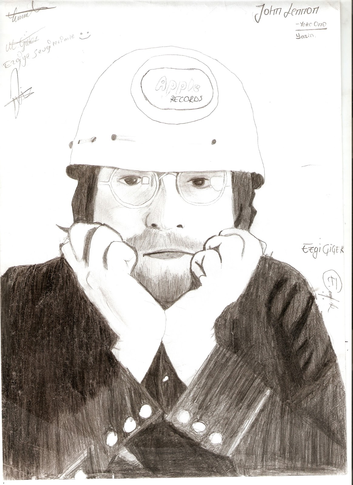 I love John Lennon so much. He was so good in The Beatles, also in his solo career. And as you can see #2 drawing is looking terrrible. There're signatures on the drawing.These signatures are the signatures of my classmates. I love them.